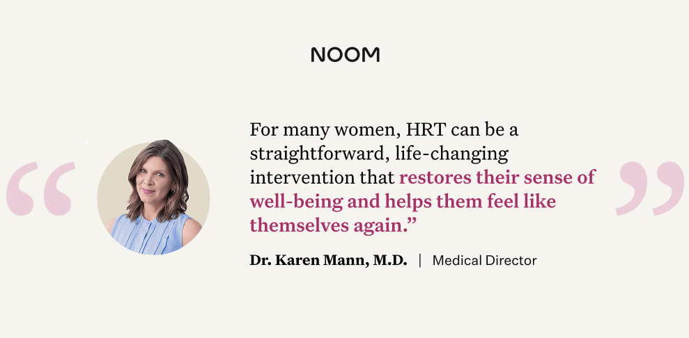 Looking for a more holistic way to navigate menopause? Noom + HRTRx could be the perfect fit. We’ll connect you with a qualified clinician who can help you explore HRT options, including patches and creams, to support your well-being. And because we know this journey is about more than just hormones, you’ll also get the Noom app and our expert-backed lessons to help you achieve your goals and find support.