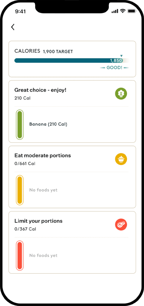 By using the handy portion size guide within Noom’s food tracker, you’ll just make sure you’re eating a properly portioned serving.