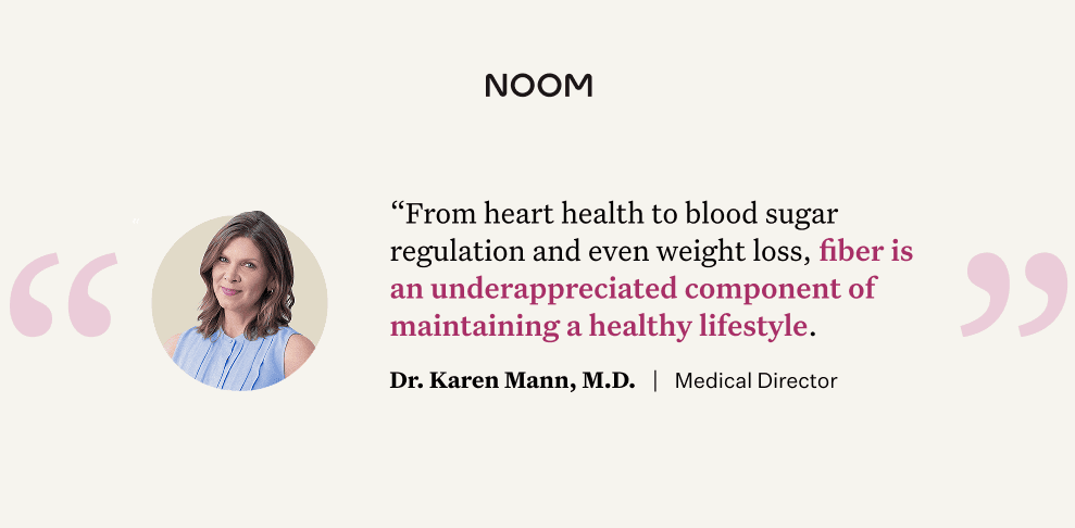 “Most people only think of fiber for its role in digestion,” says Karen Mann, MD, Medical Director at Noom. “From heart health to blood sugar regulation and even weight loss, fiber is an underappreciated component of maintaining a healthy lifestyle.”