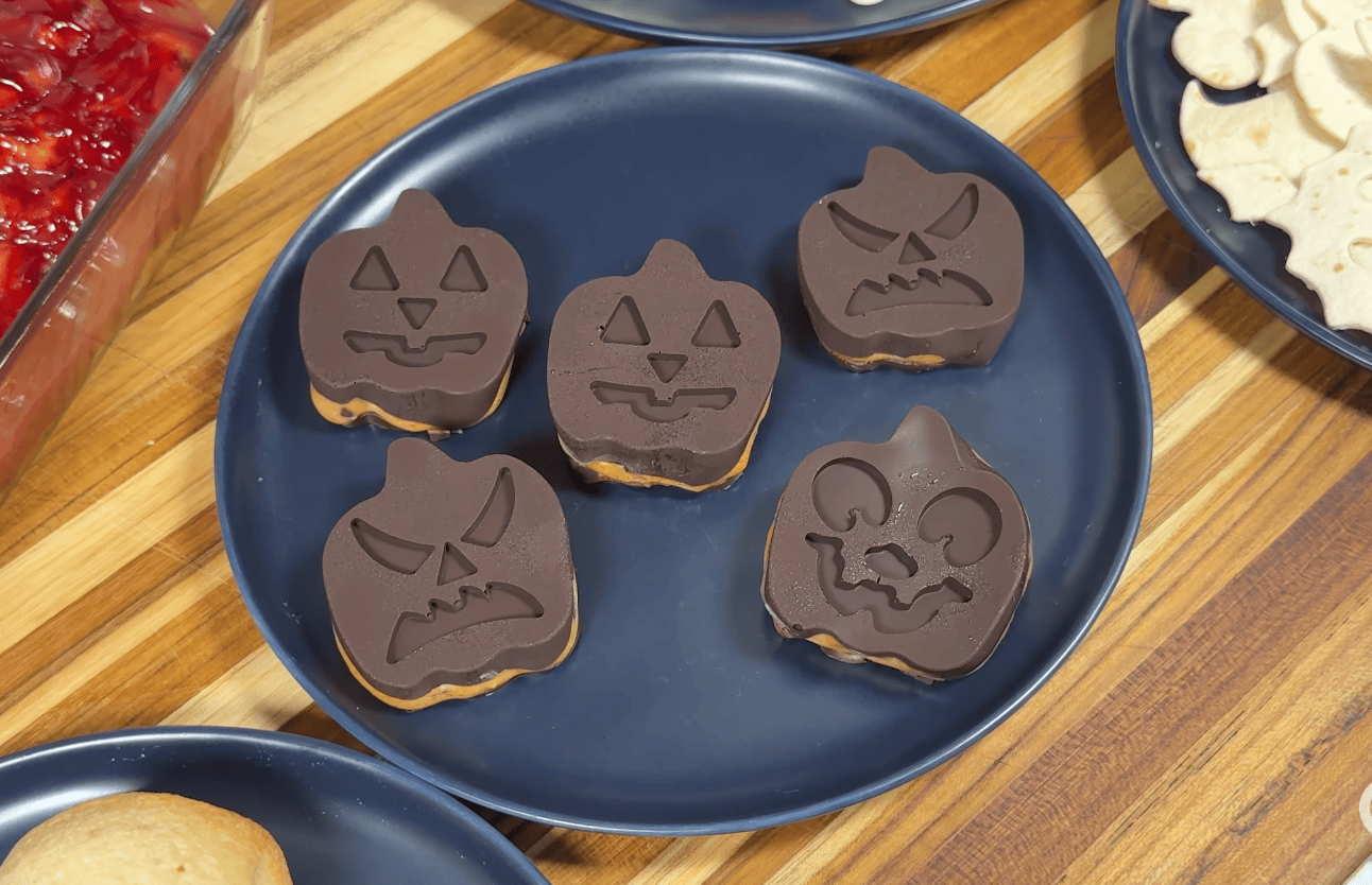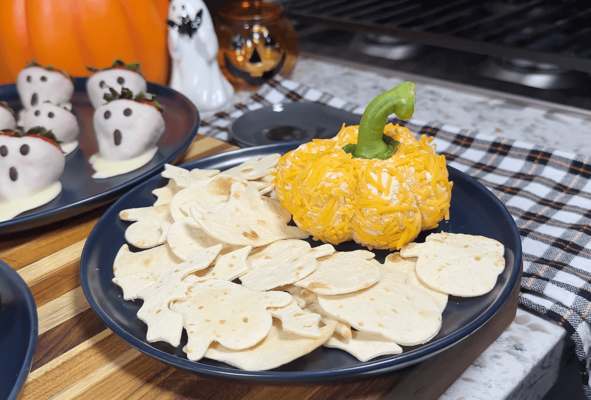 You’ll find everything from chocolate-dipped strawberry ghosts to a pumpkin-shaped cheese ball, all designed to deliver flavor and fun without a lot of sugar.