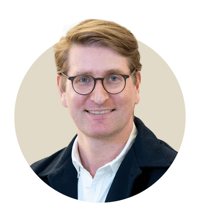 headshot of Geoff Cook, Chief Executive Officer of Noom, framed in a circular coral background. Represents Noom’s executive leadership and strategic vision.
