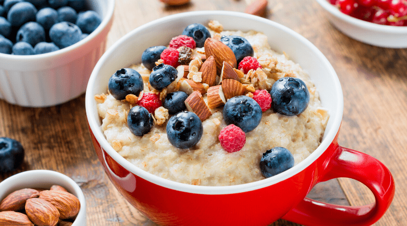 2. Avena: Remoja la avena en líquido durante la noche para que se ablande, esto te permite tener un desayuno listo para llevar. ½ taza de avena + 1 taza de leche te aporta 13 gramos de proteína si usas leche de soja o de vaca. ¡Crea tus mezclas favoritas! Inspiración: Avena con frutos rojos y plátano o banano