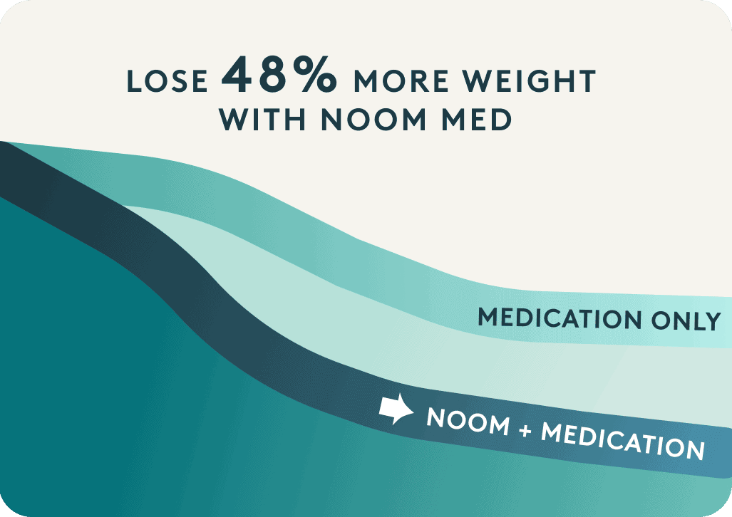 • Lose 48% more weight with Noom Med than medication alone